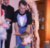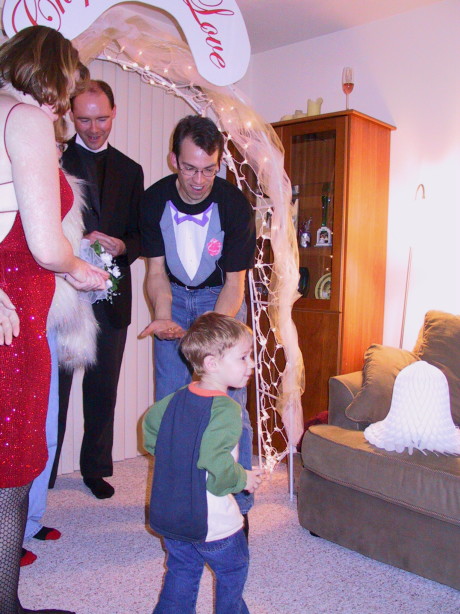 Susan's Birthday 2002Tanya and Mark threw Susan a surprise birthday party, VEGAS style! Complete with real vintage slot machines (and nickels to play with), a black jack table, an elegant buffet, Vegas characters, and a wedding chapel (with a wedding)! I somehow did not get any pictures of Tanya, the magician, or Justin, the adorable rabbit - trust me, they were cute! (Click on image to see larger version) |