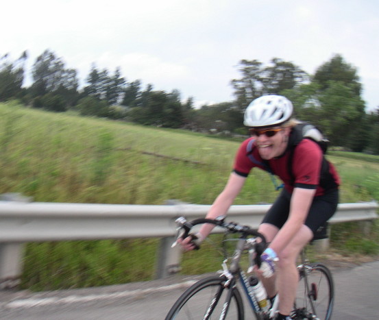 Bike 4 Breath - Two Rock RidePetaluma, CA - May 28, 2005 Team Salty Dawgs road fast and furiously to raise money for the American Lung Association's Bike4Breath Two Rock Ride. Thanks to the incredible generousity and enduring support of our families, friends and colleagues, we raised enough sponsorship to be the #1 team. I was riding in honor of my mom, a lung cancer survivor, and in memory of a family friend who was not so fortunate. Many thanks to Lauren for her inspiration to let the pirate in all of us be free (and to raise money for good causes!) I haven't ridden a road bike since my ten-speed I had in junior high. My very gracious friends, Bryn & Susan, lent me an essentially brand new Trek road bike in order to complete my first ever 65-mile ride. Riding more than 500 training miles (both mountain & road) in the past month helped me to complete the route in 6 hours and 8 minutes. Thank goodness I wasn't on my heavy mountain bike! (Click on image to see larger version) |