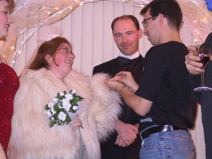 Susan's Birthday 2002Tanya and Mark threw Susan a surprise birthday party, VEGAS style! Complete with real vintage slot machines (and nickels to play with), a black jack table, an elegant buffet, Vegas characters, and a wedding chapel (with a wedding)! I somehow did not get any pictures of Tanya, the magician, or Justin, the adorable rabbit - trust me, they were cute! (Click on image to see larger version) |