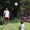 Chris, using his height to beat Eric at a game